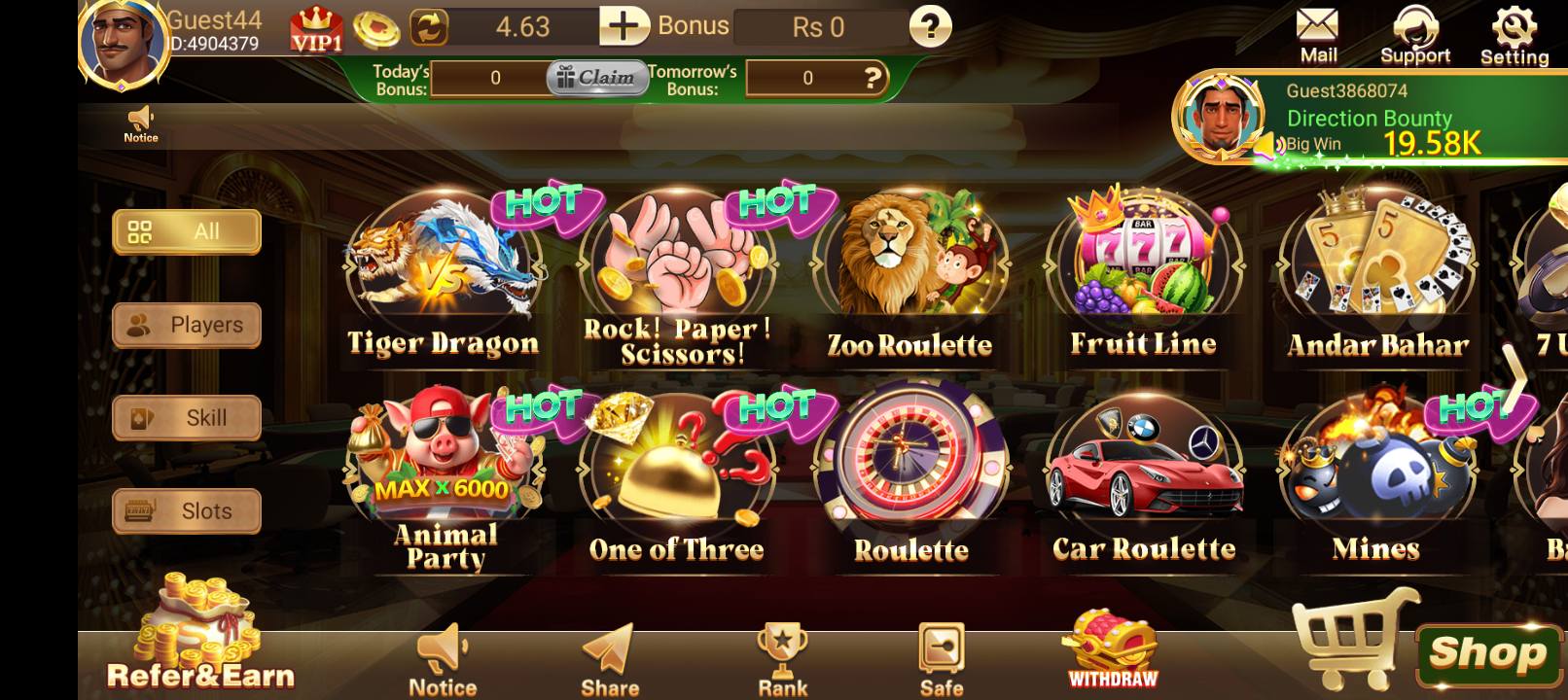 Six6s Game offers a wide range of games to keep you entertained. You can play slots, crash games, board games, fishing games, live shows, lotteries, and place bets on your favorite sports. This variety means there is something for everyone, whether you like card games or live casino action. The app keeps adding new games and features to make sure players always have fresh options.